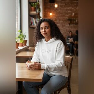Stay cozy and stylish with this white 'Chill' hoodie. Perfect for casual outings and relaxed days.