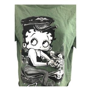 Betty Boop betty on motorcycle graphic print cropped rolled hem green tshirt size XS new