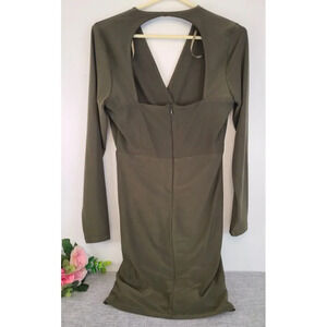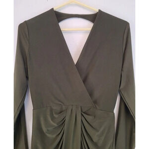 New with tag Le Château, Olive Green Formal Dress, Long Sleeve, Open Back, Size S, stretchy