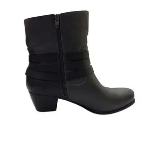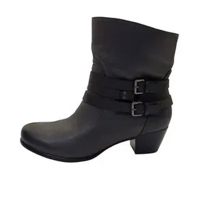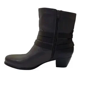 Step into comfort and style with these Naturalizer Katrina dark grey ankle boots, featuring a sleek leather/man-made upper, side zipper, and modern double-buckle strap detailing. Naturalizer is known for comfort technology, making these perfect for all-day wear.