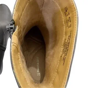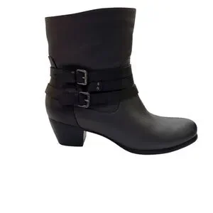 Naturalizer boots, Katrina boots, women’s ankle boots, dark grey boots, charcoal boots, buckle strap boots, comfort boots, leather boots, size 11M, zip boots, fall boots, winter boots, everyday boots, cushioned insole, walking boots, comfortable ankle boots