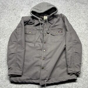 Dickies Water Repellant Duck Hooded Shirt Jacket Mens XL Slate Gray