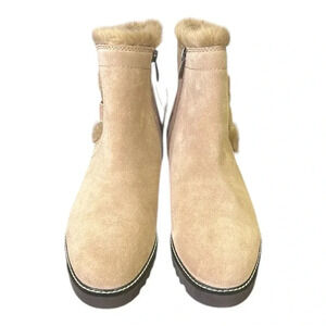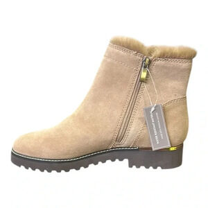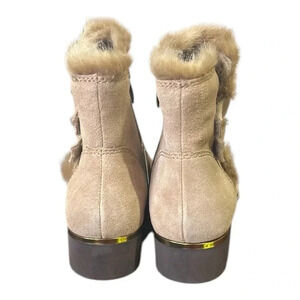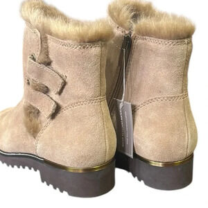Franco Sarto Crystal Water Resistant Faux Fur Trimmed Ankle Boots Sandstone Size 8.5 Sandstone