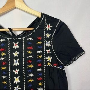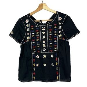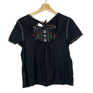 Madewell Black Embroidered Tie Back Cut Out Short Sleeve Blouse XS