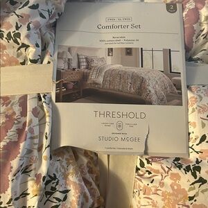 Transform your bedroom with this Studio McGee 2 Piece Comforter & Sham Set 100% Cotton Sateen Construction. Sham 6” inner envelope with ties. Sold Out in stores