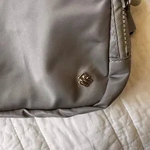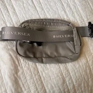 Chic gray belt bag with adjustable strap. Features Silversea logo. Very high quality bag
