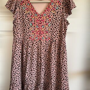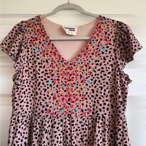 This Savanna Jane pink flutter sleeve dress features a playful pattern, perfect for any occasion. Crafted with care, it offers both comfort and style. Adorable dress to wear anywhere. Size Small