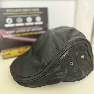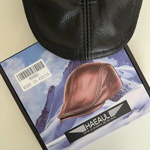 Adjustable Genuine Leather Flat Cap Newsboy Hat Ivy Cap Black HAEAUL Brand