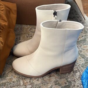 Elegant off-white boots with a sturdy block heel. Perfect for versatile styling.