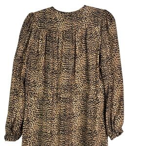 Emerson Fry May Dress Little Cheetah 100% Silk Midi Dress Long Sleeve Medium M