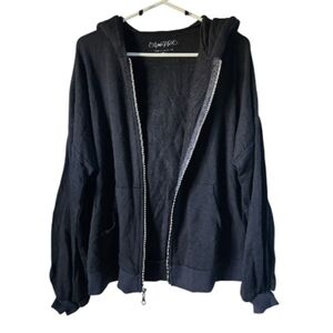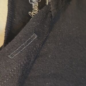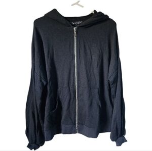 ****no drawstrings; a couple of snags- right middle near right drop shoulder- some paint specks too; totally functioning zipper- just not as smooth as her other hoodies (see last 2 pics).