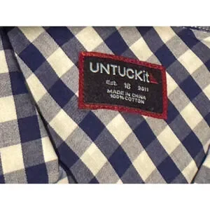 UNTUCKIT Belleza Button Up Long Sleeve Blue White Gingham Shirt Size 16