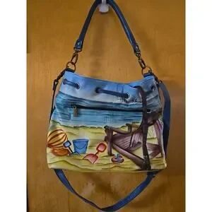 Anna by Anuschka Leather Beach 13x10.5 Crossbody Handbag Hand Painted