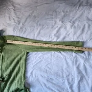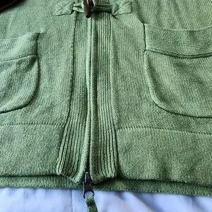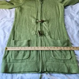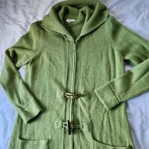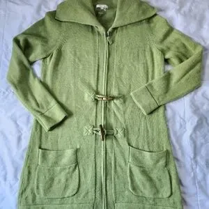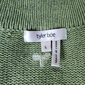 Tyler Boe green Cotton & Wool blend long line cardigan sweater.