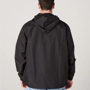 Features a hood with adjustable shockcord drawstring