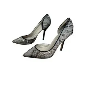 Keywords: black lace pumps, stiletto heel, pointed toe, studded, elegant, party shoes, cocktail heels, spring fashion, women's pumps, evening wear, sophisticated footwear, glamorous shoes, special occasion heels.