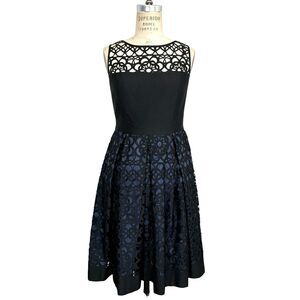 Muse Womens Sleeveless Party Dress Sz 8 Black Navy Blue Laser Cut Eyelet Wedding