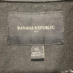 Sleek black denim jacket by Banana Republic. Ideal for casual wear. Adds a modern touch. Worn a couple times. No stains or flaws and black hasn’t faded.