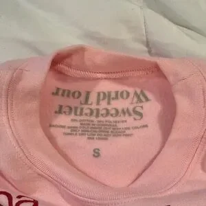 Worn once or twice. Pink sweatshirt featuring Ariana Grande concert graphics. Stylish and comfortable.