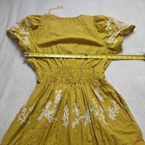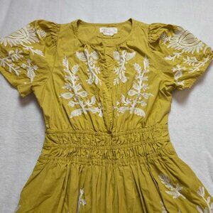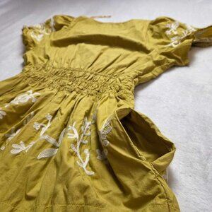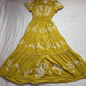 Anthropologie Yellow and White Embroidered Somerset Maxi Dress with pockets