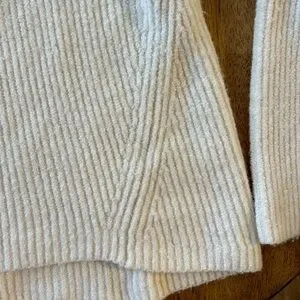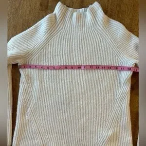 Mild pilling throughout as shown in photos. Sweater has a detergent smell. No holes, no rips, no stains, nonsmoking home. Measurements in photos.