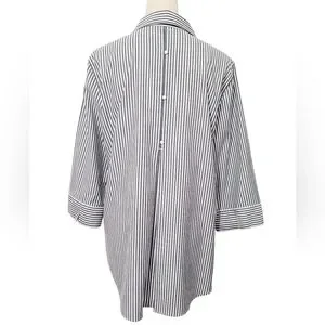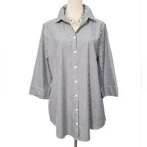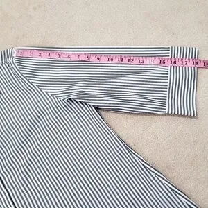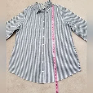 Chico’s No Iron Button Front Shirt Size 12/14 Blue/gray White Stripe 3/4 Sleeve