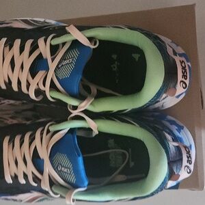 Vibrant ASICS sneakers. used but in excellent condition. Shows wear really only wear logo is/was on inside heels. Great shoe!