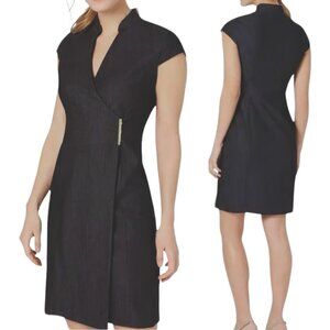 Calvin Klein Cap Sleeve Wrap Dress, Charcoal Gray 10 - EUC, Sheath, Midi, V Neck