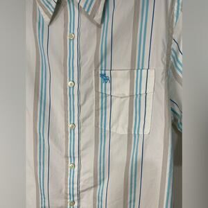 Abercrombie & Fitch Men’s Y2K Muscle White Blue Stripe Button Down Shirt XXL