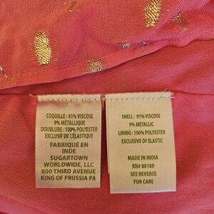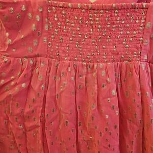 Stylish pink maxi dress featuring gold accents. Perfect for any occasion.