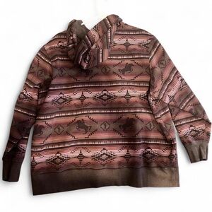 Stylish Ariat hoodie with a unique brown and pink pattern. Features a cozy hood and bold logo.