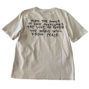 Features peace sign logo on the front of the crewneck & embroidered peace spell out lettering on the back. CHNGE logo tag on the bottom hemline corner. 100% organic cotton. Gently preworn with minimal normal wear. Size XS. Approximate measurements lying flat: PTP: 18.5” L: 23.5” Please message me prior to purchasing a bundle. #tee #peace #CHNGE #graphic #embroidered