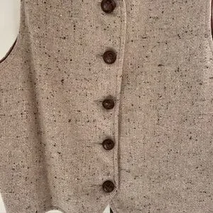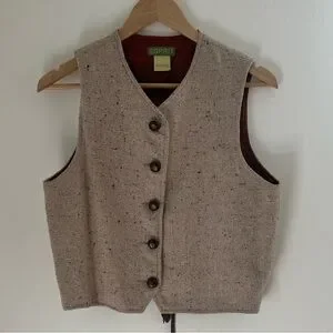 Vintage Esprit Wool Rayon Blend Vest Wooden Buttons Flecked Tan Brown Lined S