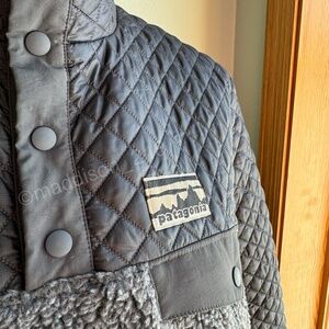 Patagonia Mixed Media Snap-T Pullover Medium Forge Grey Sherpa Quilted Jacket M