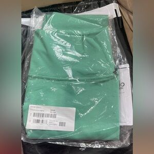 Stylish green high-waisted leggings. Perfect for workouts or casual wear.