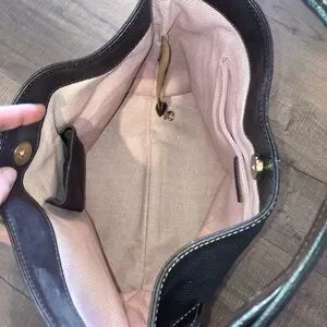Stylish dark brown Dooney & Bourke shoulder bag with gold accents. Perfect for everyday use.