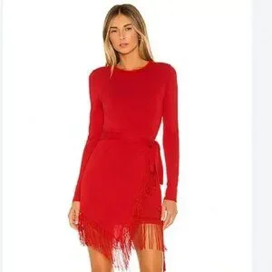 House of Harlow x Revolve Anisha Fringe Dress in Red, Size Medium
