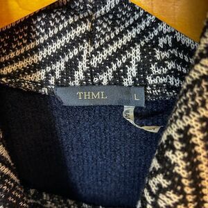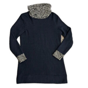 THML Navy Blue Sweater Knit LS Short Dress With Geometric Cowl Neck Size L