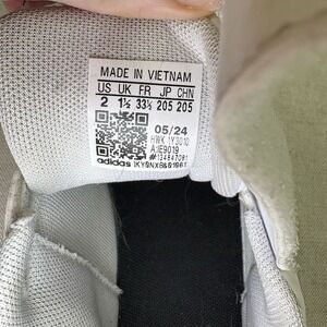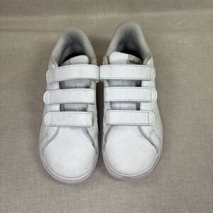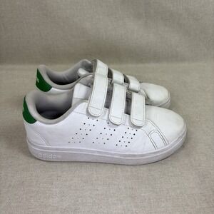 The Adidas Kids Original Stan Smith Sneakers in white with green accents, size 2, are a stylish and versatile option for unisex kids. With a low top design and synthetic lining, these sneakers provide a comfortable and secure fit. The rubber outsole and foam insole ensure durability and support for walking, tennis, and everyday activities. Made by Adidas under their Originals line, these sneakers combine classic style with sports-inspired accents, making them a perfect choice for children who love both fashion and function.