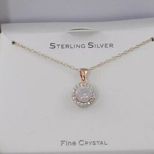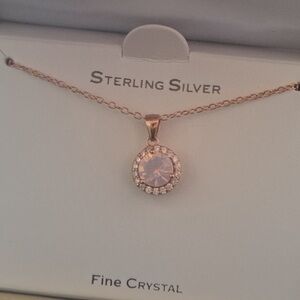 Elegant rose gold chain featuring a stunning crystal pendant surrounded by silver accents.