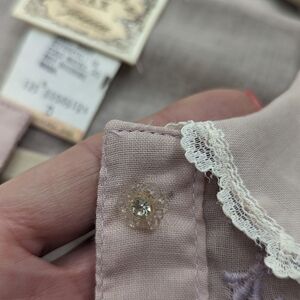 Pastel lavender embroidered detail along buttons
