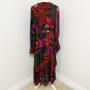 Farm Rio Bird Flowers Maxi Dress Floral Ruffles Long Sleeve Multicolor XL NWT