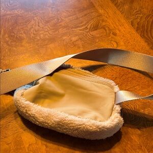 Plush fleece belt bag with a cream strap. Ideal for everyday use.