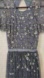 Jewel neckline. Short sheer sleeves. Fitted and lined bodice. Banded waist. Tulle underskirt. Concealed zip closure. Though gray with strong blue leanings, it is often listed as Vintage, Cornflower, or Periwinkle blue.