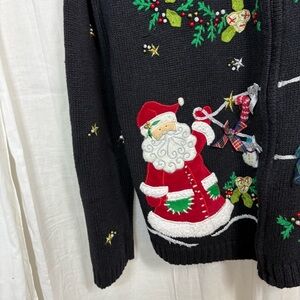 Designers Originals Studio Joy Zip Up Holiday Sweater Size L Christmas Santa