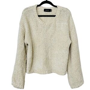 MINKPINK Cream Silver Foil Shimmer Wide Sleeve Textured Pullover Knit Sweater M