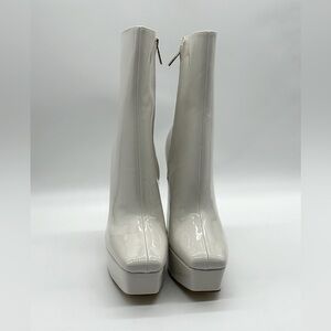 Guess BYRA Women’s Platform Block Heel Ankle Boots – Ivory Patent, Size 10M New In Box