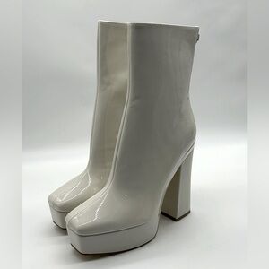 Guess BYRA Women’s Platform Block Heel Ankle Boots Ivory Patent, Size 10M NIB