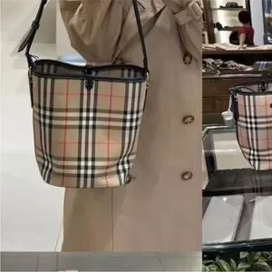 Stylish Burberry shoulder bag with iconic checkered pattern. Features tan and black colors. Perfect for any occasion.