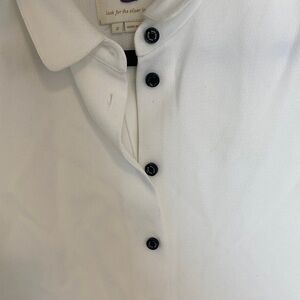 Elegant white dress with black button details. Features a stylish black necktie. Perfect for formal occasions.